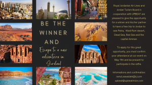 Royal Jordanian scommette sulle potenzialità, parzialmente ancora inespresse, del traffico Mice. La compagnia aerea è infatti al fianco del Jordan Tourism Board nell’organizzazione di un evento che si svolgerà il prossimo 11 maggio a Roma, dedicato esclusivamente ai “principali player del segmento Mice – spiega Ramzi Zawaideh, area manager Italy & Malta del vettore -: i partecipanti avranno l’opportunità di scoprire l’offerta della Giordania per questa tipologia di clientela e conoscere le più recenti novità, a livello di infrastrutture e servizi mirati”.