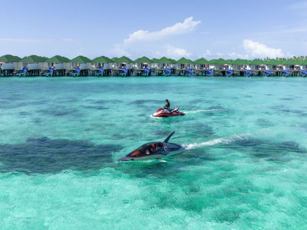 Le moto d’acqua semi-sommergibili Seabreachers, la prima e-bike d’acqua al mondo Hydrofoiler XE-1 di Manta5 e una nuova flotta di Mini Moke personalizzate. Sono le ultime novità di Siyam World, ultimo nato del gruppo maldiviano Sun Siyam Resort. Oggi il complesso, inaugurato meno di un anno fa, dispone quindi del primo Seabreacher alle Maldive. Con le linee aerodinamiche di un jet da caccia e lo scafo che ricorda la forma di uno squalo, il Seabreacher si muove più come un aereo che come una moto d’acqua. Può saltare, tuffarsi sott’acqua, tagliare le onde ed è persino in grado di ruotare a 360 gradi sull’acqua. Il tettuccio in acrilico e gli oblò sottomarini offrono al pilota e ai passeggeri una visuale completa, mentre il motore da 260 cavalli consente al mezzo di volare sull’acqua a una velocità di 80 chilometri all’ora.