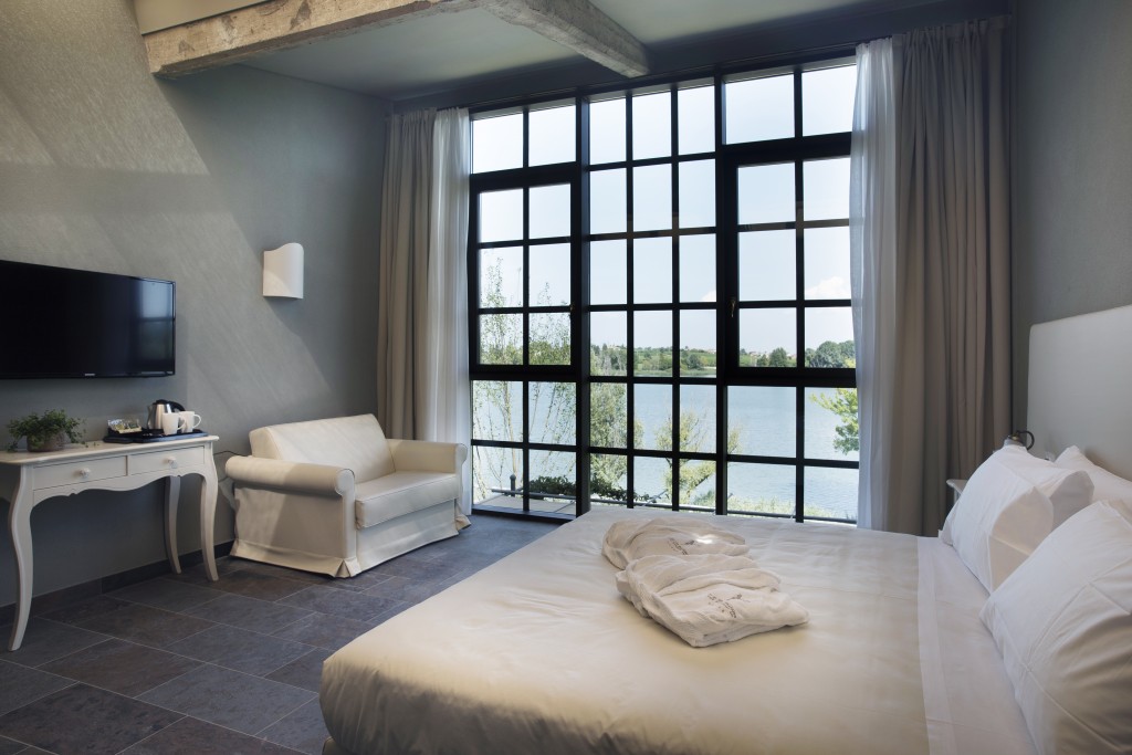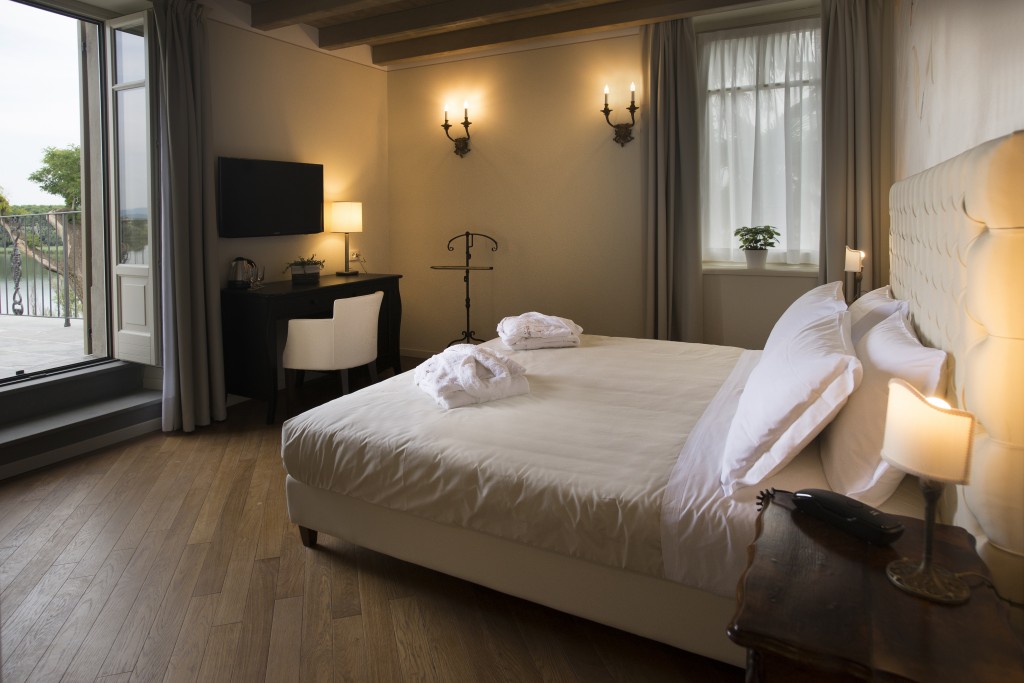 Sorge protetto nell’oasi del Laghetto del Frassino, 70mila mq di incontaminato parco naturale Le Ali del Frassino-The Nature’s way resort: una villa padronale dei primi del ‘900 e le dipendenze della proprietà che costituiscono i 5 edifici immersi nel verde, ristrutturati nel rigoroso rispetto dell’ambiente e dello stile originario. La villa liberty si erge al centro del complesso e nella luminosa veranda ospita la sala ristorante dell’Ardea Purpurea sospesa sullo specchio del Lago del Frassino. Le Ali del Frassino offre 92 camere o suite tutte diverse tra loro, decorate con motivi di flora e fauna tipiche o arredate con mobili di pregio, i più moderni comfort ed includono aria condizionata, wifi gratuita, tv lcd e minibar. Il centro benessere, aperto tutti i giorni, dispone di due saune, doppio bagno turco, vasca idromassaggio riscaldata e cabine massaggio mentre la piscina esterna è aperta solo in estate ed offre un terrazzo arredato con lettini ed ombrelloni da dove poter ammirare la natura circostante. L’hotel è a Peschiera del Garda, completamente immerso nella zona dei vigneti di Lugana, a pochi chilometri da Gardaland. Il resort appartiene al Gruppo Ristoclassique e, come tutte le strutture che ne fanno parte, è curato nei minimi dettagli. La struttura è adatta anche a meeting e congressi, con la sala meeting principale di circa 110 mq. interamente illuminata a luce naturale, può essere allestita a platea oppure secondo diversa indicazione del cliente.