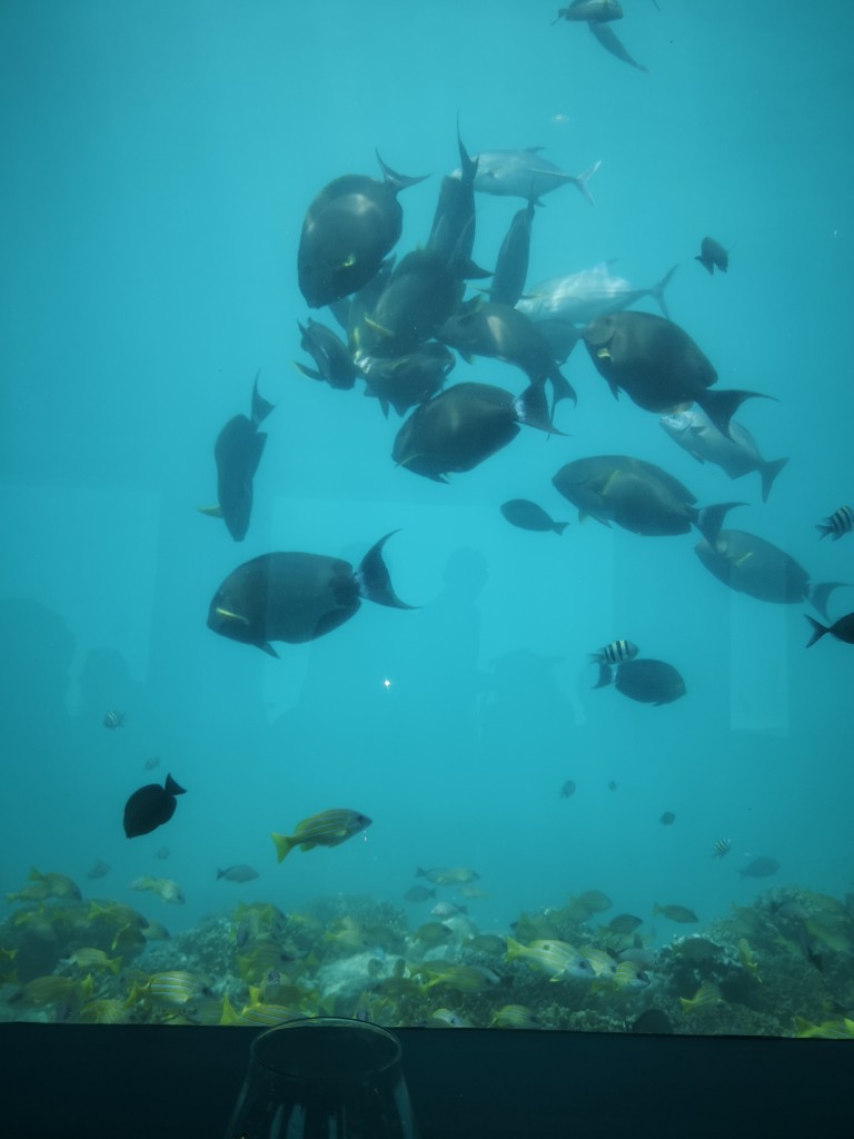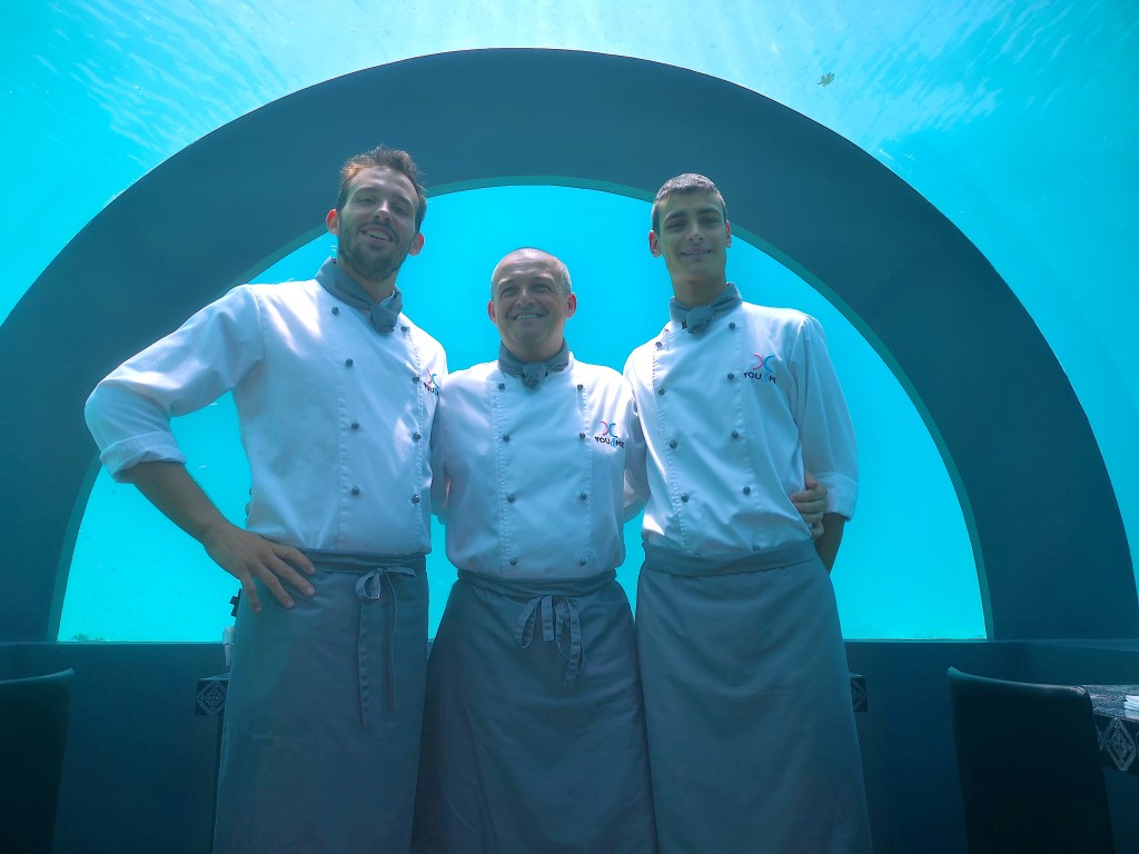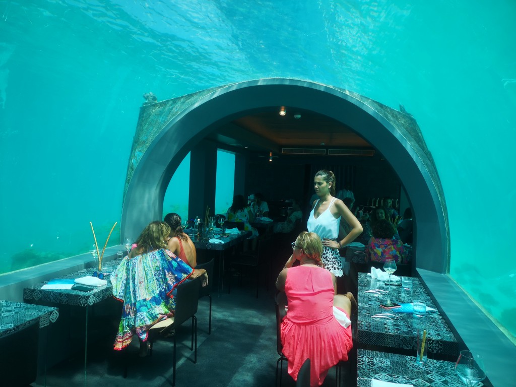 Adagiato 6 metri sotto il livello del mare, a circa trecento metri di distanza dal pontile del resort, isolato e raggiungibile sono in barca, offre un raffinatissimo ambiente dove consumare un pranzo o una cena esclusivi, attesi da una brigata di cucina eccellente circondati dalle finestre panoramiche affacciate sul fondo del mare che pullula di pesci multicolori, offrendo scene di vita sottomarina impagabili.