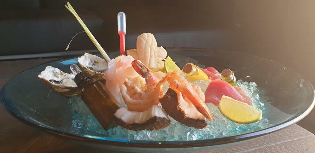 Plateau royal, olio al placton, citronella e ampolla di mango, di assoluta e unica creazione di De Ambrosis