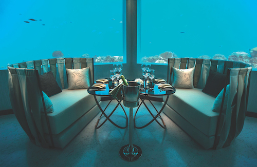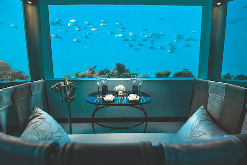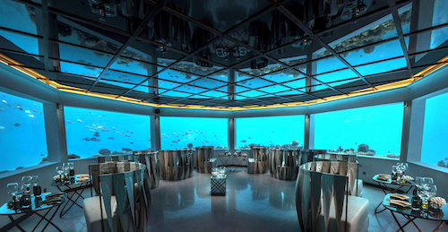 Uno dei plus che offre il resort è il ristorante subacqueo M6m, (meno 6 metri sotto il livello del mare, uno dei 5 ristoranti sottomarini presenti alle Maldive.