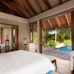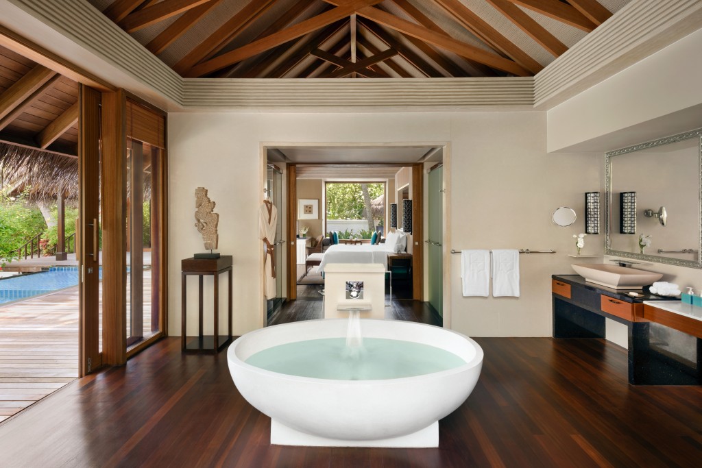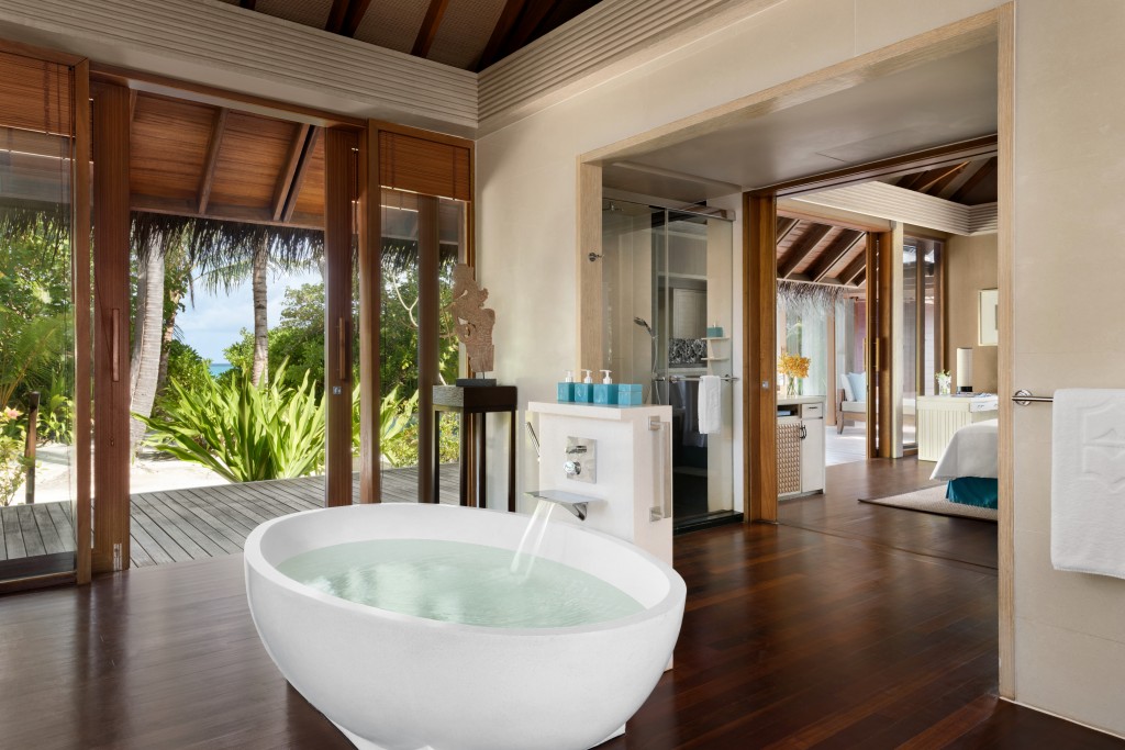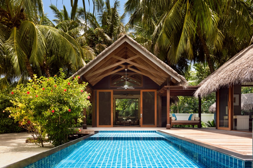 Le ville hanno diverse tipologie: partono con 60 sunset overwater villa da 133 mq, affacciate sulla laguna, 13 one bedroon de luxe pool da 189 mq, 15 pool villa da 189 mq, 16 one bedroon villa with pool da 189 mq, 5 two dedroom beach villa with pool, 5 two bedroom family beach villa with pool 244 mq, per arrivare ad una categoria davvero particolare: le 16 one bedroom ocean tree house, 218 metri di abitazione affacciate sull’Oceano direttamente, ma costruite sugli alberi, sistemazione del tutto suggestiva. I fiori all’occhiello del resort sono Villa Muthee, 570 metri quadrati e la Presidenziale, Grand Ocean view villa Laalu, da quasi 1000 mq.