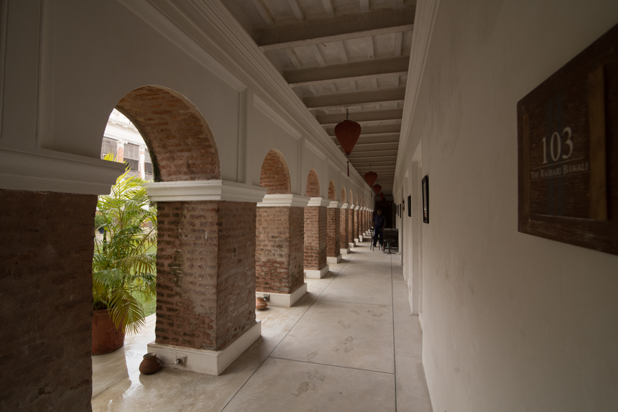 Questa residenza che durò oltre 170 anni di splendore poi passò alla compagnia delle West Indie, che ne fecero un loro avamposto, fino a cadere dimenticata e quasi del tutto abbandonata. Ai gironi nostri l’attuale proprietario, Ajay Rawla, vi si imbatté nel 2008 e, innamoratosene, cercò i 18 proprietari sparsi per il mondo per poter finalmente realizzare la propria visione. Acquistata la proprietà iniziò una ristrutturazione e recupero che durò 8 anni. Oggi in un’area di giardini e di un corpo centrale che circonda una ampia corte interna fiancheggiata da colonnati, sorgono 31 stanze del tutto differenti una dall’altra di sei categorie: Chota Bari, Classic, Zamindari, Royal Suites e Dak Bungalow, per ospitare una clientela che cerca qualcosa di realmente diverso. La spa ajurvedica completa il quadro, assieme alla piscina e ai due laghetti naturali incastonati nella proprietà che si sviluppa su un ettaro e mezzo. La ristorazione si basa sulla cucina tradizionale del Bengala.