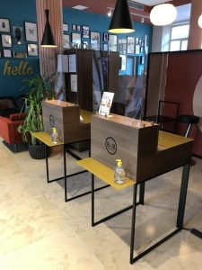 Si parte dalle 8 regole d’oro: il personale in hotel e i clienti sono invitati a seguire tra cui l’utilizzo di dispositivi DPI certificati (mascherine, guanti, calzari e soluzioni igienizzanti e disinfettanti), plexiglas protettivi presso i desk di accoglienza, linee di distanziamento sul pavimento, la restrizione dell’utilizzo delle aree comuni, l’invito all’utilizzo dell’ascensore una persona alla volta e il mantenimento della distanza di sicurezza di almeno 1 metro. Il processo di sanificazione viene applicato nei corridoi, nelle arre comuni e nelle camere quotidianamente grazie anche all’utilizzo di macchine ionizzatrici atte alla purificazione dell’aria indoor. Non più carta per le informazioni a smart tv e una telefonata, all’arrivo in camera, da parte della concierge per spiegare tutto. Anche la ristorazione (breakfast) ha subito un cambio di rotta, in linea con le normative sanitarie nazionali, proponiamo pratiche breakfast box per rimpiazzare la colazione a buffet.