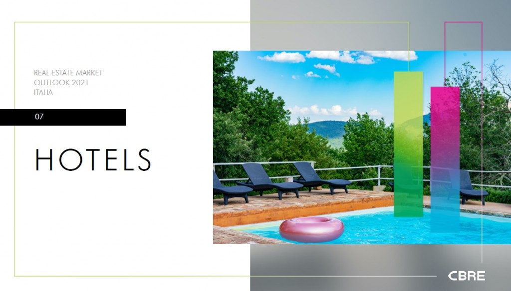 Va evidenziato, tuttavia, che con il cosiddetto decreto Semplificazioni sono stati prorogati di tre anni i termini di inizio e ultimazione dei lavori: aggiustamento che potrà assicurare dunque tempistiche più flessibili. La ripresa post-Covid-19 si prefigura quindi anche come un’opportunità per accelerare i trend che erano già in corso prima della pandemia, caratterizzati da una crescente attenzione nei confronti della qualità e della personalizzazione dell’offerta e dalla valorizzazione delle location secondarie. In sintesi, il 2021 si prospetta come un anno ancora lontano dai risultati raggiunti nel 2019, ma probabilmente gli investitori non rinunceranno all’occasione di creare valore attraverso conversioni e sviluppi in questa fase di attesa.