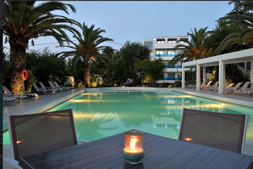 Compare sul catalogo di Grimaldi Lines tour operator il piccolo hotel 4 stelle che occupa una bella posizione sulla costa centro orientale dell’isola a 10 km dal capoluogo a 12 dall’aeroporto. Non si affaccia direttamente sul mare ma a soli 150 metri si trova la spiaggia di Dassia e il suo mare cristallino.