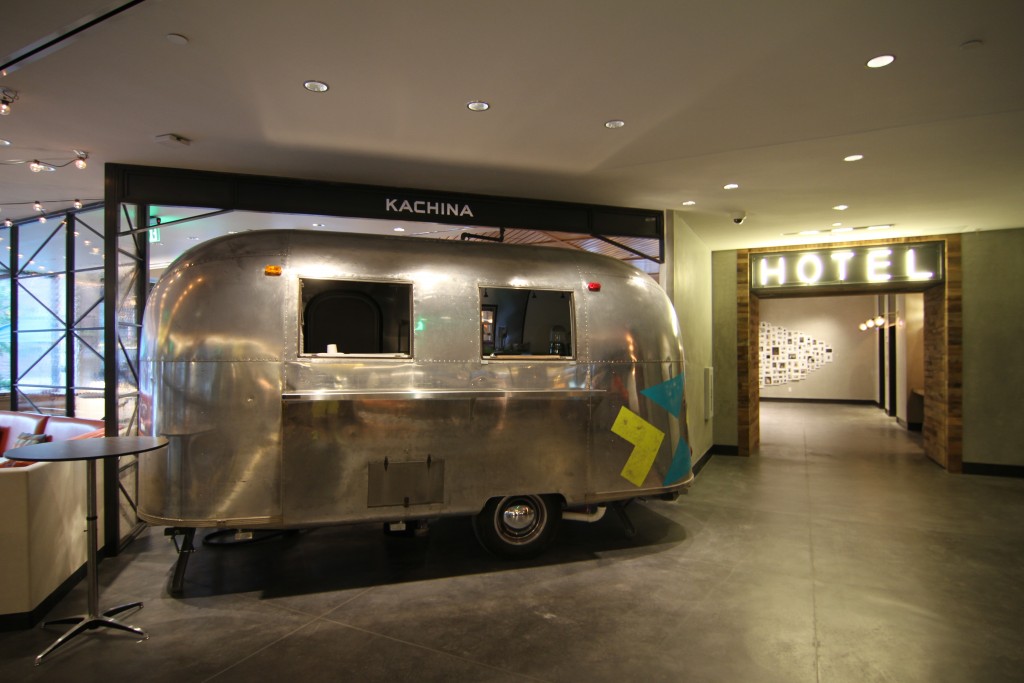 L’ingresso del The Maven è spaziosissimo e quello che accoglie il viaggiatore è la sensazione di trovarsi a casa, grande sì, ma casa. La prima cosa che si nota è una gigantesca mano in legno appesa al soffitto, opera di Andrew Ramiro Tirado, per darti il benvenuto e ricordare quello che la mano dell’uomo può fare. The Maven è un hotel unico: boutique hotel assolutamente indipendente: “a uniquely crafted Denver hotel”, come amano definirlo. Le 172 camere sono state disegnate dallo studio, Johnson Nathan Strohe, il medesimo che ha progettato il boutique hotel The Crawford nella Union Station di Denver, poggiando il concetto su decorazioni in stile loft. L’albergo dispone anche di una spaziosa Windsor Ballroom con pavimenti di legno massiccio, pareti con mattoni a vista e legno. L’impressione che si ha è di vivere all’interno di un loft. L’arredamento basico è in legno e ferro, le porte in ferro hanno magneti al posto dei cartellini di cartone per il “non disturbare” o “per favore rifatemi la camera” e altro. I bagni sono spaziosi e curati, il wi fi incluso e potente, prese di corrente dovunque anche usb, televisione satellitare, grandi finestre nelle camere per godersi il sole di Denver. Nella hall si trova una spartana ma efficientissima reception, e un chiosco da strada color argento che la mattina serve caffè (complimentary) e un bar ben fornito, Poka Lola Social Club, dal look accattivante in fondo alla spaziosa hall, di fronte all’ingresso, che serve un drink free al giorno agli ospiti o cocktail ricercati. Adiacente all’albergo si trova il Kachina Southwestern Grill del Sage Restaurant Group, che in chiave moderna propone la cucina alla griglia del sud-ovest; quindi il, un lobby bar che serve cocktail. E poi il servizio compreso di limo, la palestra, e la vicinanza a tutti i luoghi strategici della città compreso il Coors field, sede dei Rockies (Mlb).
