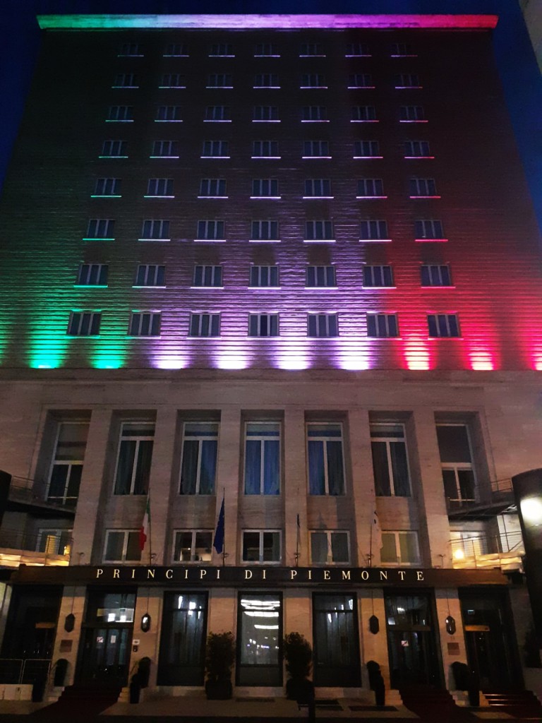 Il Gruppo UNA avvolge con i colori della bandiera italiana l’edificio in stile razionalista che ospita il Principi di Piemonte | UNA Esperienze, icona dell’ospitalità torinese e flagship hotel della catena: un abbraccio simbolico al Paese impegnato nella battaglia contro il Covid-19 e un segno di solidarietà e vicinanza rivolto a tutti gli italiani in questo momento difficile. Il gesto rappresenta un ringraziamento speciale a medici, infermieri e personale sanitario, in prima linea ogni giorno per curare le persone affette dal virus, e un sincero augurio per tutti coloro che stanno combattendo contro la malattia.