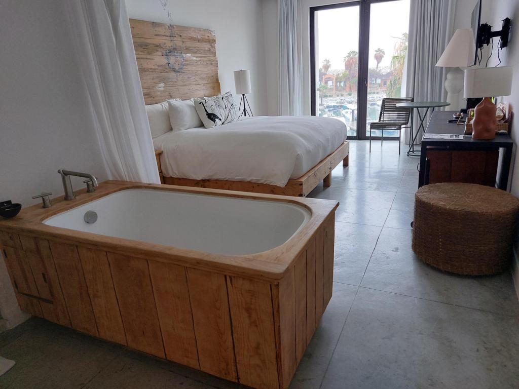 L’ospite viene accolto da un ambiente dai colori caldi dove è facile sentirsi a casa: gli ingredienti sono legno, vimini, tappeti rustici e tante opere d’arte, ma anche l’accoglienza e il sorriso del personale. Ricca e interessante la proposta per l’ospite, che va dall’offerta gastronomica del ristorante stellato Ganzo Downstairs, curata dal noto chef Carlos Peregrina Serralde, alle piscine del giardino e del suggestivo rooftop, alla Spa El Ganzo. Gli amanti del relax al mare potranno anche raggiungere la Playa El Ganzo: una spiaggia tranquilla e protetta tra l’Oceano Pacifico e il Mare di Cortés da dove ammirare la migrazione delle balene – tra dicembre e aprile – i leoni marini e i pellicani. Il balcone della suite 403 è il posto preferito di un’aquila pescatrice!