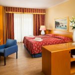 La Deluxe è ampia ed elegante con splendida vista sul parco e sulle piscine in posizione soleggiata con ampio balcone arredato. Ampia circa 32 m² con legno e marmo dispone di un angolo soggiorno e un ampio bagno con doccia o vasca.
