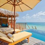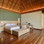 Per quanto attiene le ancor più lussuose overwater, l’Huvafen Fushi conta 12 lagoon bungalow da 130 mq, 12 ocean bungalow da 160 mq con vista sull’oceano, piscina infinity e pavimento in vetro per ammirare il fondale marino. Completano il quadro due esclusive two bedroom ocean pavillion da 330 mq dalla privacy assoluta, con due camere da letto, piscina infinity illuminata con fibre ottiche, solarium e maggiordomo.