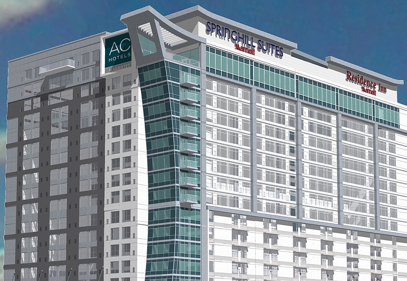 Marriott ha appena lanciato il suo primo progetto triple-branded: un investimento da 137 milioni di dollari realizzato dallo sviluppatore North Point Hospitality di Atlanta, che condurrà all’apertura a metà 2018 di una struttura da 470 camere con i marchi AC Hotels by Marriott, SpringHill Suites e Residence Inn a Nashville. È questo solo l’ultimo esempio di alberghi caratterizzati da più insegne. Il concept non è affatto nuovo, ma è da relativamente poco tempo che sta riscontrando il favore di sviluppatori e investitori europei e americani, soprattutto nella sua forma a oggi più diffusa dei dual-brand hotel: strutture situate nello stesso edificio, o in due palazzi adiacenti, gestite dal medesimo operatore con due marchi differenti. Entrate, reception e ascensori sono solitamente separati, mentre entrambi gli alberghi condividono il back-office e spesso anche lo staff. «Si tratta di un concept destinato a crescere ulteriormente, man mano che gli investitori diventeranno più familiari con tali progetti -, racconta Nicole Perreten, co-autrice di un recente rapporto sul tema realizzato dalla società di consulenza Hvs -. Funziona molto bene, in particolare, quando i due marchi si rivolgono a un pubblico non troppo sovrapponibile, avendo però al contempo un posizionamento non eccessivamente distante, la differenziazione essendo rappresentata possibilmente dalla lunghezza dei soggiorni medi e dalle ragioni del viaggio». I vantaggi per gli operatori appaiono del tutto evidenti: «Una struttura dual-brand normalmente non consente di praticare tariffe medie particolarmente più alte rispetto a quelle dei rispettivi hotel singoli -, spiega un’altra autrice dello studio come Sophie Perret -. Il beneficio risiede però nel risparmio sui costi operativi, garantiti dalla condivisione di molte delle funzioni di back-office».