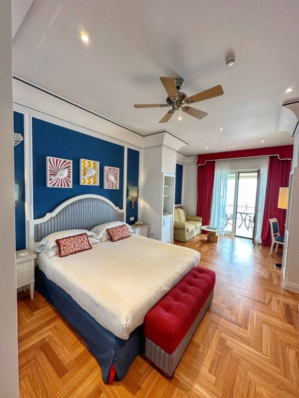 Le nuove camere fronte mare sono in particolare ora caratterizzate da uno stile che richiama la Sicilia grazie all’uso di ceramiche tipiche dell’isola e una elegante palette di colori. Un’immagine inedita è stata data anche agli spazi comuni come i corridoi, dove la moquette blu si sposa con le decorazioni dei soffitti e il bianco delle pareti. Non sono da meno le terrazze e gli spazi all’aperto che presentano nuovi arredi realizzati con materiali locali e provenienti da artigiani della Sicilia mentre i pergolati consentono di sfruttare le ampie aree esterne nelle giornate più calde.