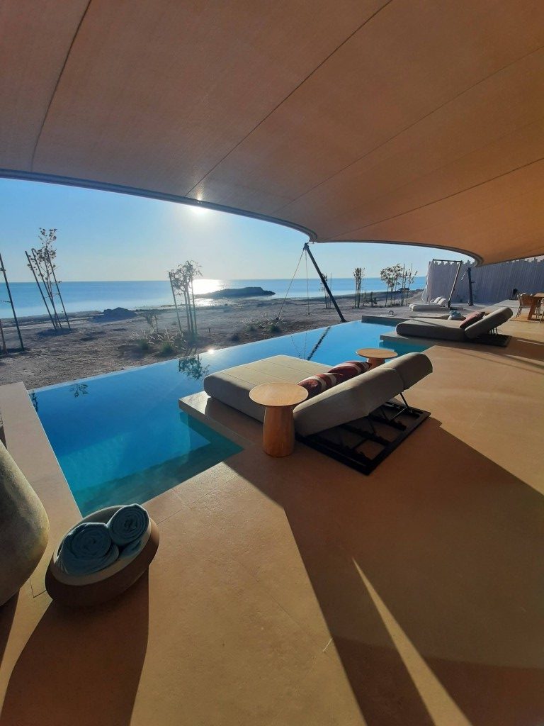 A solo un’ora di auto da Doha, la capitale del Qatar, tra dune calcaree, acque cristalline e tramonti maestosi è stato recentemente inaugurato il resort Ras Abrouq, nato dalla joint venture tra Our Habitas e Qatar Airways: 42 ville che si rifanno idealmente allo stile delle tende del deserto, in versione luxury, arredate con tonalità della terra, trame naturali ed elementi di design locale, forniscono un’interpretazione moderna del tessuto culturale della regione. Di diversa grandezza, possono ospitare fino a un massimo di otto persone e offrono un’esperienza unica grazie anche alla piscina privata e a un’ampia terrazza dalla quale ammirare le acque del golfo Persico.