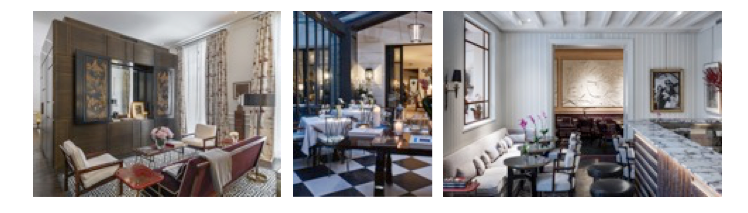 Le 29 camere e suite e le aree comuni accolgono gli ospiti in ambienti luminosi e dalle dimensioni generose studiati ad arte dall’architetto fiorentino Michele Bönan, firma di tutti gli indirizzi del gruppo fin dall’esordio, che qui si è ispirato al lusso discreto delle case di Hubert de Givenchy. Lampade, tavoli, sedute, quadri e sculture dal ‘700 agli anni ‘40, ‘50 e ‘60 – inclusi pezzi unici firmati Jacques Adnet, David Hicks, Jansen e Poillerat – sono stati scelti personalmente da Bönan al Marché-aux-Puces di Saint-Ouen. I pavimenti in parquet Versailles, i camini presenti in quasi tutte le camere e gli specchi originali – accuratamente restaurati – sono valorizzati dall’accostamento con tappeti a trama geometrica e mobili Michele Bönan Interiors, realizzati su misura dai migliori artigiani fiorentini.