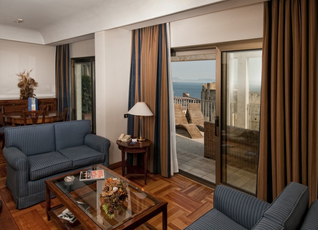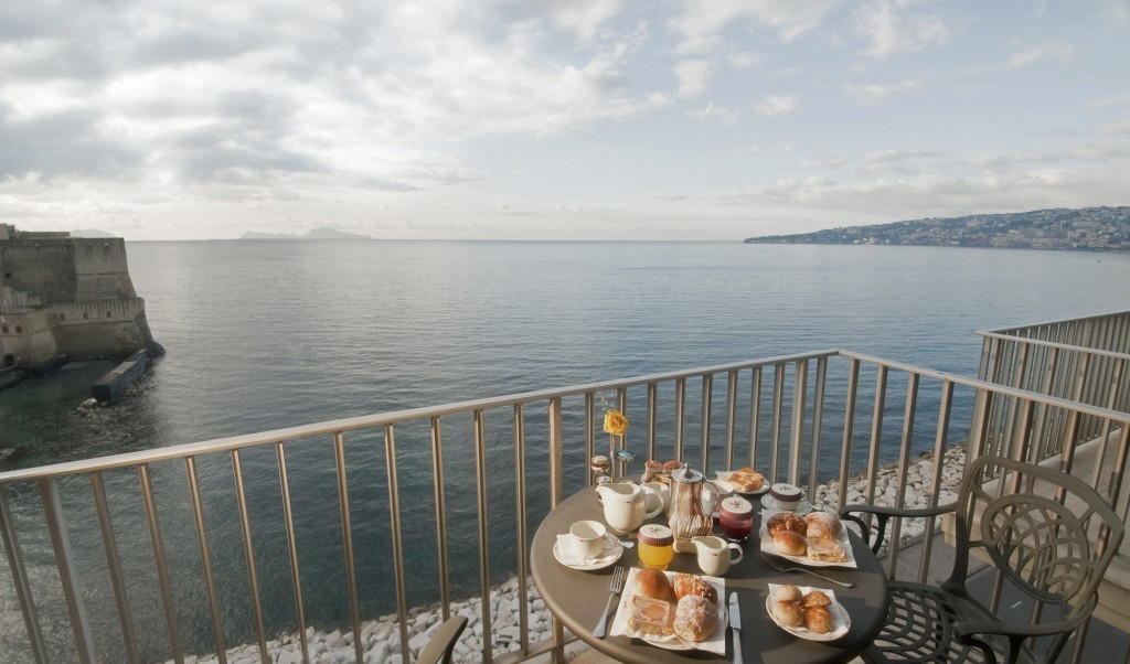 Uno degli hotel più celebrati è proprio il Royal Continental a Napoli, situato esattamente di fronte a Castel dell’Ovo, sul lungomare Partenope, 397 camere, di cui la maggior parte con ampie vetrate e balconi sullo spettacolare scenario del Golfo di Napoli, spaziose e molto luminose. Si tratta di un albergo dall’affascinante passato. Inaugurato nel 1955 su progetto di Ferdinando Chiaromonte, nel luogo dove sorgeva il Grand Hotel Royal des Etrangers, è oggi una struttura di grande prestigio dai grandi ambienti comuni, molteplici spazi d’incontro, angoli relax. Uno dei plus dell’hotel sono gli interni disegnati da Gio Ponti. ‘The Lounge Bar’ e l’esclusivo ristorante panoramico ‘al Castello’, con vista che spazia dal Vesuvio alla collina di Posillipo, rappresentano dei punti di incontro non solo per la clientela dell’hotel. Il Roof al decimo piano dell’hotel, con la splendida veduta sull’antico Borgo Marinari e sul leggendario Castel dell’Ovo, ospita la singolare piscina di acqua di mare disegnata da Gio Ponti. Non un semplice hotel, ma un vero e proprio meeting point cittadino con i suoi eventi, degustazioni, mostre e aperitivi.Location di riferimento per eventi e meeting, il Royal Continental è un polo congressuale di primaria importanza nel panorama nazionale. Dotato delle più moderne attrezzature e di wi-fi gratuito, si caratterizza per le sue numerose sale con luce naturale e vista mare. L’auditorium da 530 posti, le 16 sale meeting, le 13 business suite e gli spazi espositivi per oltre 200 mq possono ospitare qualsiasi tipologia di evento.