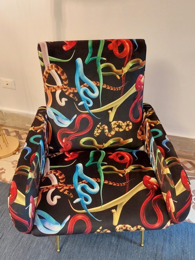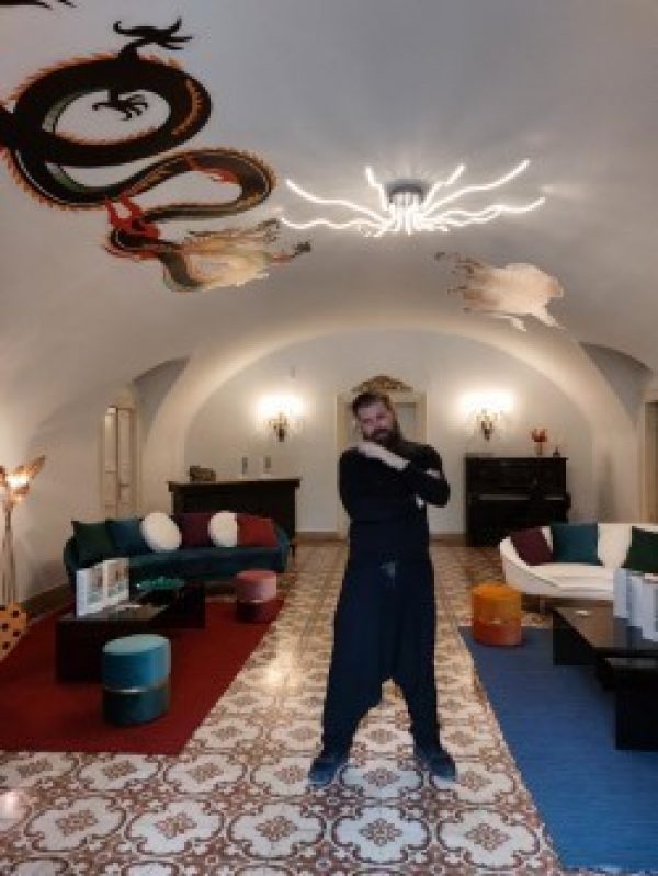 Il nome è un richiamo al conte Lodovico di San Bonifacio, proprietario della struttura, ma anche un omaggio al noto Ludwig II di Baviera: il re che rivoluzionò l’estetica nel suo incantato castello di Neuschwanstein. «Ho voluto portare nel primo spazio che incontra il visitatore delle immagini che mi hanno affascinato a una Biennale di Venezia: un grande drago e tubi fluorescenti applicati sulle volte del soffitto, a cui ho aggiunto animali esotici dai colori intensi, una poltrona con il tessuto decorato da serpenti e oggetti che vogliono creare un contrasto tra esterno e interno. Nei luoghi che gestiamo mi piace mostrare all’ospite qualcosa di diverso, stimolandolo a porsi delle domande. Vorrei comunicare l’idea di un viaggio verso Oriente dove il racconto intreccia la realtà con il mistero e la fantasia. Per realizzare queste idee, un remix di icone che sono parte della cultura pop e hanno attraversato il tempo, abbiamo una scenografa che lavora con noi!».