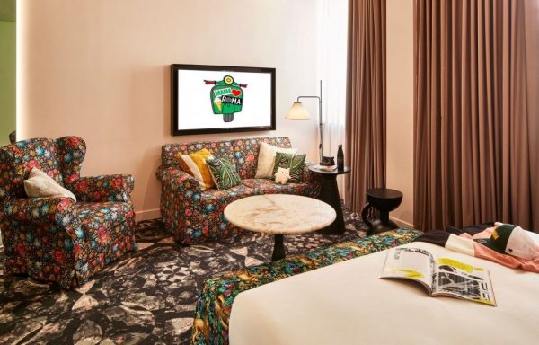 La struttura da 217 camere distribuite su sei piani intende presentarsi come un rifugio urbano, dove far incontrare ospiti e abitanti del posto. Il design del primo indirizzo Mama Shelter sul suolo italiano è caratterizzato da citazioni del calcio italiano e dell’arte romana classica nella lobby, ma anche dagli ambienti solari e mediterranei dei ristoranti, fino alla coloratissima area wellness.