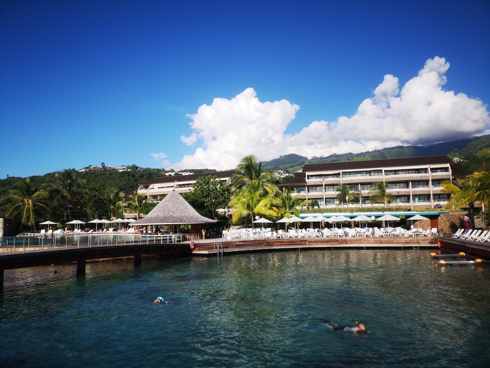 E’ un hotel studiato per il business, ma anche per chi transita da Papeete per poi andare oltre, per una pausa fra un volo e l’altro, o per passare un pomeriggio nel complesso delle piscine, una “Infinity” e l’altra naturale, affacciate sul mare, con un bar che serve squisiti aperitivi, ma soprattutto che si trasforma in un caleidoscopio di colori mentre le canoe solcano il braccio di mare antistante, con Moorea sullo sfondo dietro la quale tramonta il sole con scenari cangianti e infuocati, che si possono ammirare sdraiati sul deck.