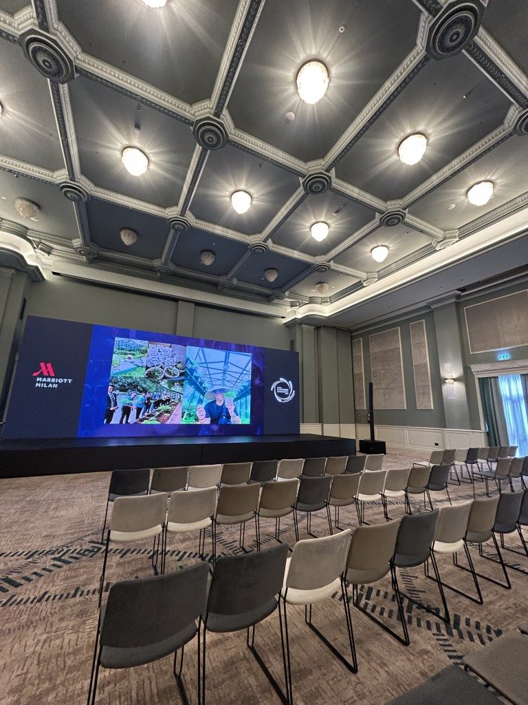 L’autunno 2025 del Milan Marriott Hotel ha portato con sé il completamento del radicale rinnovo degli spazi congressuali, successivo a quello già avanzato dell’intera struttura alberghiera, che si concluderà a inizio 2026.