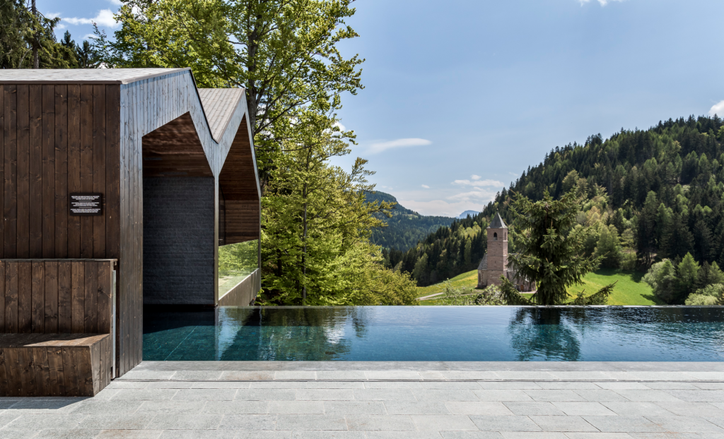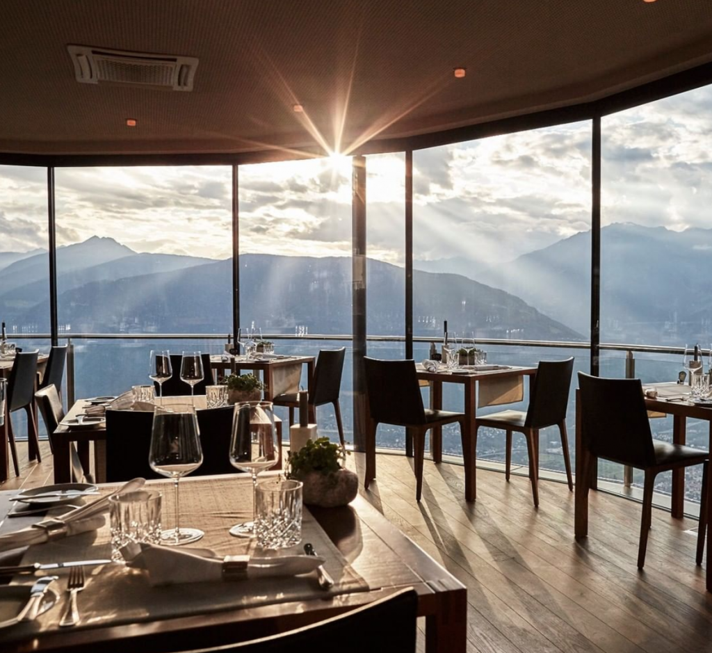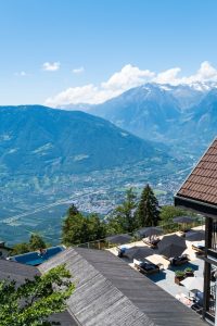 La spa oltre a saune e vasche ha una piscina a sfioro sulla valle che si è trasformata in un’icona fotografica, su vari livelli di terrazze relax, una è occupata dalla vasca “onsen” all’aperto, tutto a diretto contatto con la natura. Ai fornelli Massimo Geromel, con menzioni anche nella Guida Michelin e dell’Espresso, gestisce i sapori del ristorante Panorama, premiato con due cappe, con una vista aerea su Merano e le montagne circostanti, ad arricchire i menù dedicati al fine dining. L’aspetto culinario è completato dal ristorante Miramonti Klassik, cucina mediterranea e la calda stube con la boiserie originale, i piatti genuini e saporiti della montagna altoatesina.