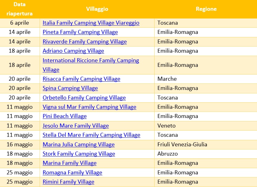 Il gruppo si appresta quindi ad affrontare la nuova stagione con importanti rinnovamenti, sia nei servizi sia nell’offerta di prodotto. A partire dagli oltre 300 nuovi lodge di ultima generazione, spaziosi, di design e realizzati con materiali riciclati e riciclabili. Ma si segnala anche l’ampliamento delle aree ricreative e dei parchi piscine, tra cui l’installazione di un secondo parco acquatico con pool bar al Romagna Family Village di Riccione. C’è poi l’estensione del protocollo di ospitalità per gli amici a quattro zampe, Family dog friendly, a tutte le strutture del gruppo. Si espande pure il prodotto Bike Experience, che integra il bike tourism nel ventaglio delle offerte dei villaggi, nonché il progetto business Workin’ Glamp: un concept innovativo per eventi business 100% open air.