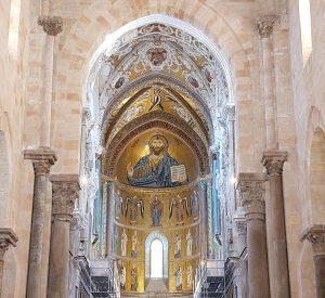 La cattedrale, i cui campanili erano un tempo delle torri difensive, è simbolo di tolleranza: Ruggero governava una terra dove convivevano arabi, bizantini e latini, quindi volle concedere a ciascuno spazio per il proprio credo. In accordo con papa Urbano II l’abside venne costruita rivolta alla Mecca, secondo la quibla araba; i bizantini ottennero la costruzione di una chiesa a pianta centrale, raggruppata attorno al quadrato per la preghiera che divenne il transetto; infine, per avere le tre navate della basilica latina, nacque l’innesto tra la chiesa latina, quella bizantina e il mirhab arabo.