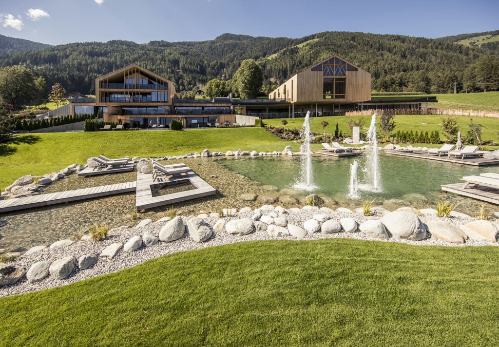 Ogni suite ha anche il proprio pontile privato al laghetto naturale, un piccolo specchio d’acqua naturale di montagna (la fonte proviene dalla montagna che sovrasta il Purmontes) dove nella bella stagione ci si rinfresca e ci si rigenera in un angolo idilliaco di acqua trasparente e pura. Tra sdraio, pontili di legno e rocce, il riposo è garantito.