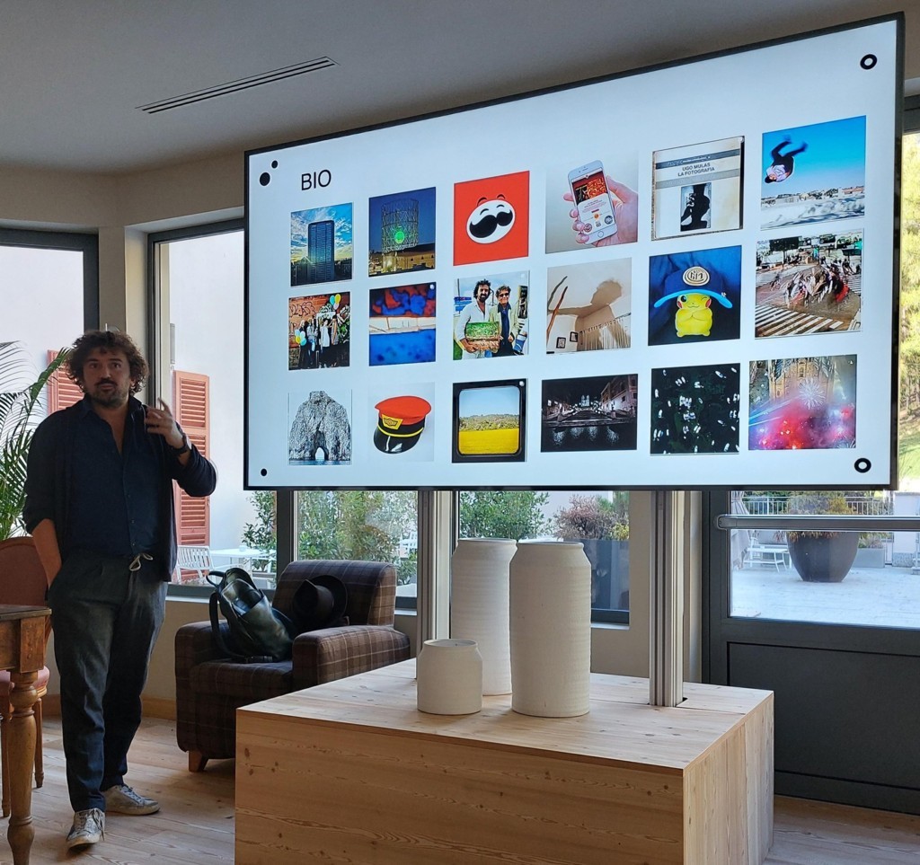Infine in Miro ha raccontato otto anni di pendolarismo tra Milano e Roma scattando foto sempre dallo stesso finestrino del Frecciarossa. «Ho ritratto un dinamismo esterno in contrasto con la staticità del pendolare che riguarda tutti noi: distratti dal telefono non vediamo il bellissimo film che ci circonda. Queste immagini sono state stampate su supporti in vetro e ferro che richiamano il finestrino del treno».