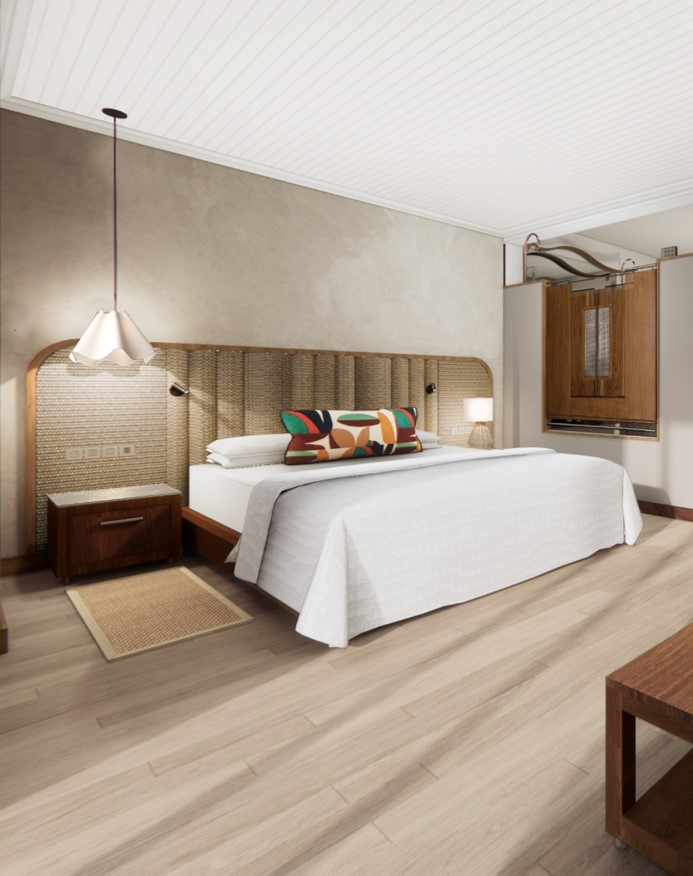 La tipologia delle nuove camere di quest’area include 27 Beach Room al piano terra “dove, letteralmente abbiamo fatto entrare la spiaggia in camera, un unicum a Mauritius” e 42 Bay View Room al primo e secondo piano.