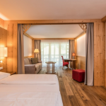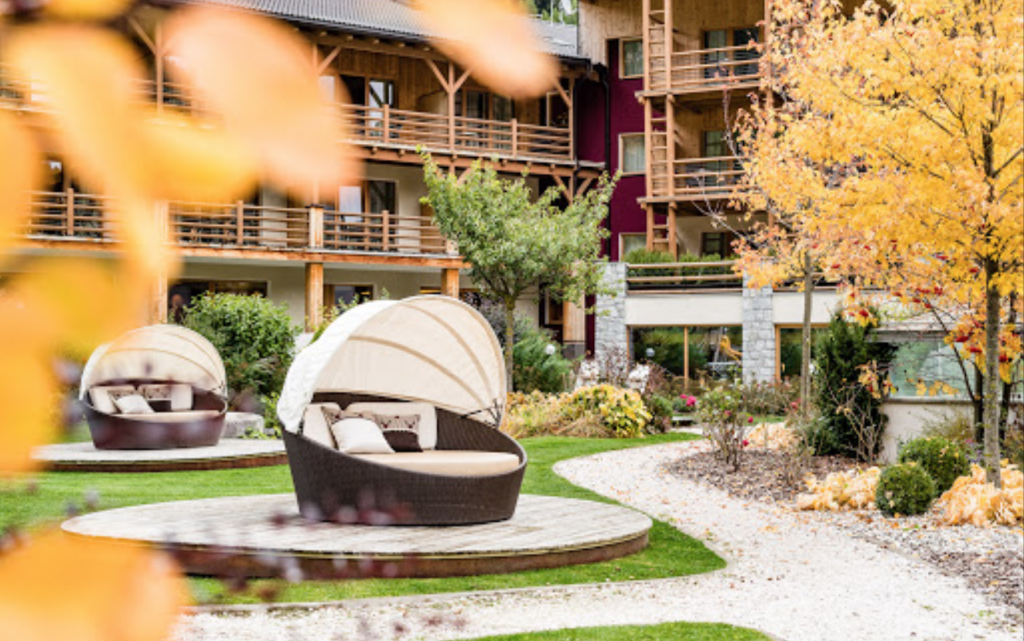 Importante il “percorso” legato al benessere: nell’area riservata alle saune, al pianterreno, si trova un nuovo bagno di vapore, la sauna con caminetto e una delicata sauna biologica, oltre alla piacevole doccia esperienziale con giochi di luce. Per rigenerarsi dopo la sauna è stato inoltre creato il nuovo spazio relax „Silentium“. Fuori, il parco wellness, attorno alla piscina esterna riscaldata vi sono infatti confortevoli lettini e accoglienti angoli relax che permettono di riposare confortevolmente attingendo nuove energie dalla natura.