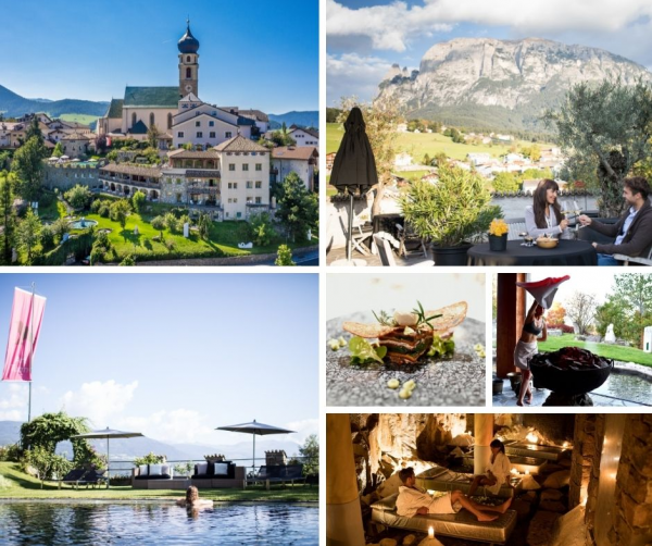 Camere e suite sono una diversa dall’altra, arredate con pezzi di design e mobili antichi di artigianato locale, rivestimenti in parquet di quercia o in quarzite argentea delle Dolomiti; nell’originale centro benessere, tra zona umida e aree relax, spiccano la grotta di sale scavata nella roccia e la nuova Mystic sauna in cui rigenerarsi con le gettate di vapore. Esclusivi anche i trattamenti di benessere ispirati dal territorio come il tradizionale bagno di fieno (inventato proprio a Fiè) proveniente dalla malga di famiglia sull’Alpe di Siusi, e a base di mele a km zero, vinacce e pino mugo. Unica anche la black pool panoramica riscaldata, con vista sul monte Sciliar. La roccia su cui è costruito l’hotel è perfetta anche come palestra: accanto alla sala fitness è stata creata una vera e propria falesia indoor alta 9 metri, per fare arrampicate.
