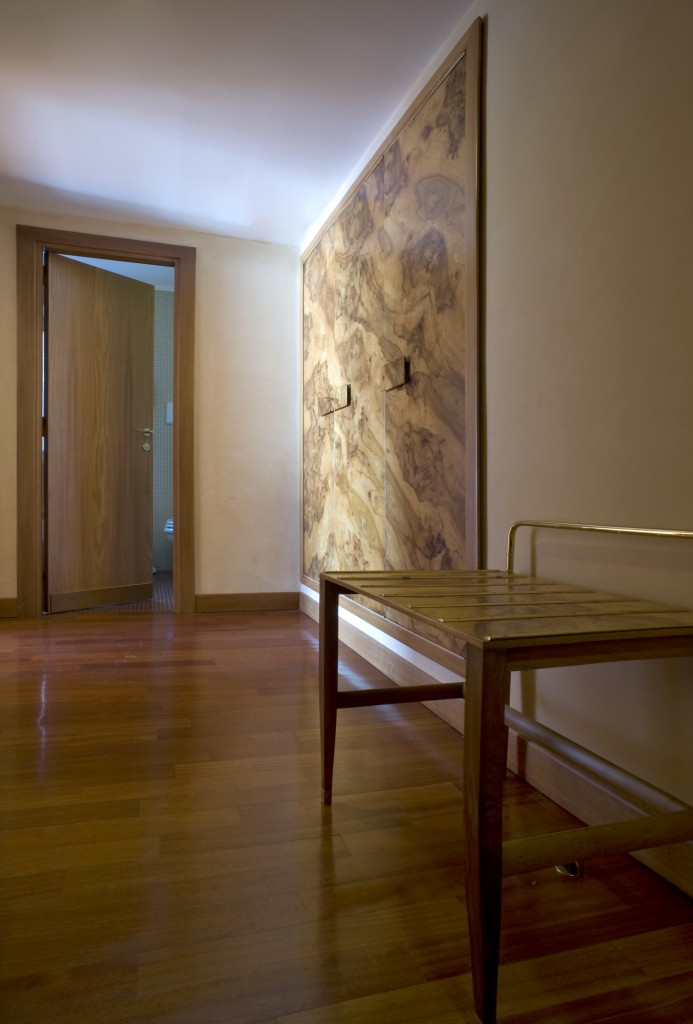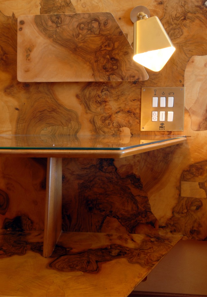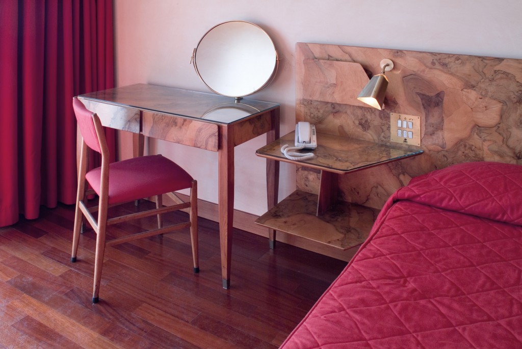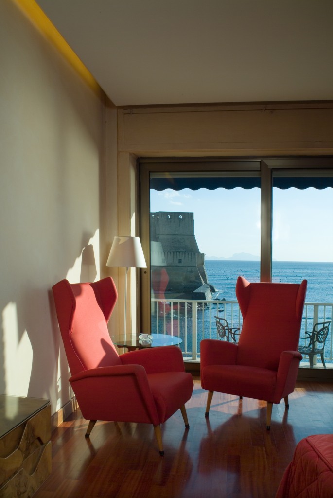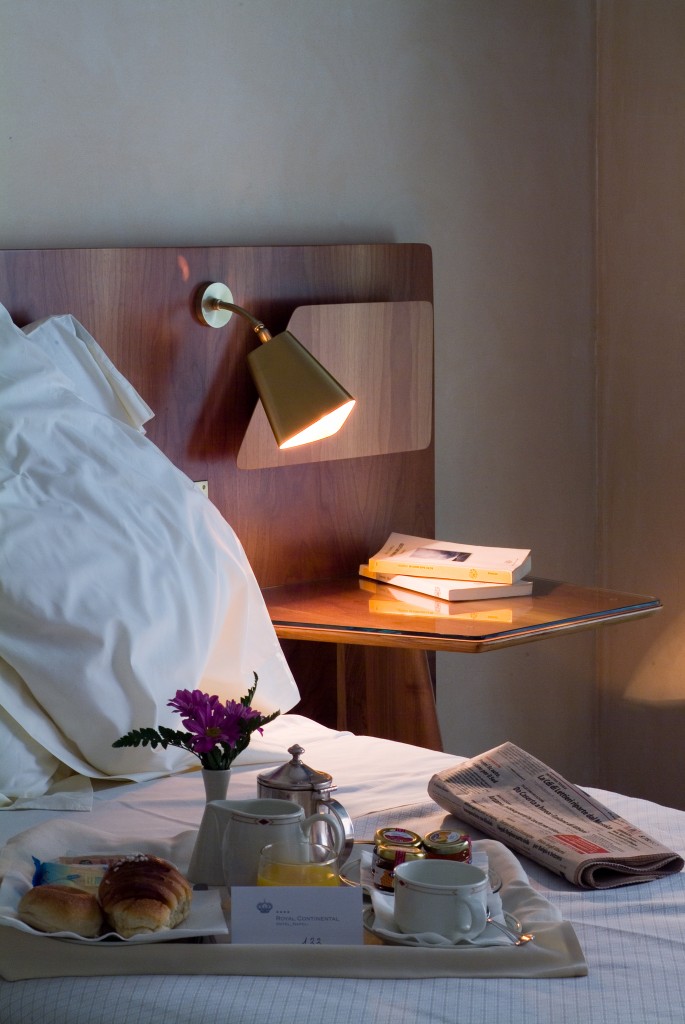 L’hotel Royal Continental di Napoli, sul lungomare Partenope di fronte a Castel dell’Ovo, una delle 5 strutture del Royal group, ha una peculiarità che ci riporta indietro nel tempo. Uno degli otto piani che contengono le 397 camere, di cui la maggior parte con ampie vetrate e balconi sullo spettacolare scenario del Golfo di Napoli, è stato dedicato a un grande architetto del ‘900 che lo arredò la prima volta. Il suo motto, e lo si vede ancora al piano a lui dedicato era: «Non è il cemento, non è il legno, non è la pietra, non è l’acciaio, non è il vetro l’elemento più resistente. Il materiale più resistente nell’edilizia è l’arte». Fu chiamato ad arricchire di “arte” il Royal Continental dall’ing. Roberto Fernandes, il capostipite dell’odierno Royal Group, è dedicato un piano intero dell’hotel, il Gio Ponti Floor dove è possibile soggiornare in una delle camere ‘museo’ con arredi e finiture lignee progettati, espressamente per l’hotel, da Ponti. Le pareti attrezzate prive di piedi di appoggio, i comò a tre cassetti con piede unico, i portariviste e le lampade in ottone satinato, integrate nelle testate dei letti in radica, hanno caratterizzato la storia del design italiano e qui si ritrovano, testimonianza viva del fascino del tutto “vintage”, del comfort e dell’eleganza delle 24 camere dedicate interamente a celebrare la creatività del grande architetto.