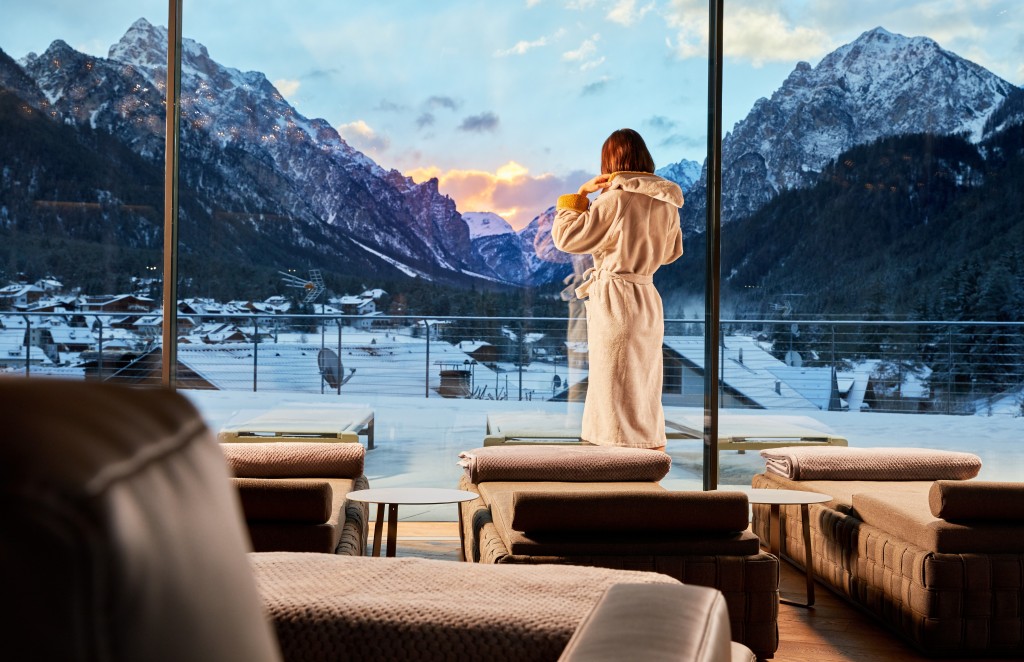 Unici e molto particolari anche i trattamenti di coppia per esempio l’ “Alpin Wellnesslove” con peeling, bagno ai fiori di montagna, massaggio alla schiena, spumante e praline, relax in coppia nella private spa suite per due.