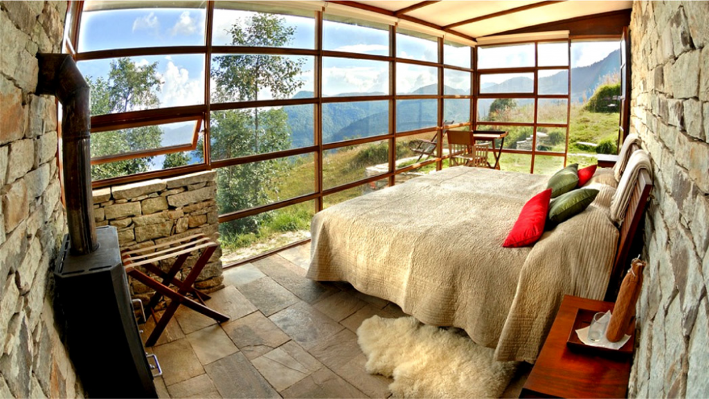 È uno degli hotel affiliati più piccoli di Relais & Châteaux, “mondo” di cui è entrato a far parte nel 2015. Shakti 360° Leti, lodge a oltre 2 mila metri di altitudine nella regione del Kumaon (Uttarakhand, India), è struttura, realizzata nel 2007, meravigliosa combinazione di tecniche di costruzione tradizionali e design contemporaneo, con una vista mozzafiato sulle vette dell’Himalaya. In questa incredibile,e unica collocazione si trovano quattro pavillion-suite e una grande sala da pranzo a vetrate, all’insegna di un lusso fatto di dettagli e mai eccessivo. Ogni abitazione ha anche un patio privato, per chi vuole godersi la vista in solitudine e totale tranquillità. Lo chef Yeshi Lama prepara ogni giorno piatti gourmet, utilizzando ingredienti locali e le verdure dell’orto: un viaggio gastronomico per scoprire le tradizioni indiane, dove non manca qualche incursione più creativa. Ma qui il lusso nasce dal fatto stesso di trovarsi in un luogo così speciale e dall’emozionante esperienza che si vive per raggiungerlo. L’hotel aprirà il 1° ottobre e resterà aperto fino al 20 aprile (con variazioni sulla chiusura dovute al clima). Il soggiorno presso Shakti 360° Leti può essere anche combinato con Shakti Kumaon Village Walks, emozionanti itinerari in case tradizionali ristrutturate. Da Shakti 360° Leti partono diversi itinerari ed escursioni molto interessanti come l’escursione alla cascata (via Gogina), al santuario di Shiva, lungo il fiume Ramganga o alla Khadaa Dhunga (letteralmente “roccia ferma”), fra le altre.