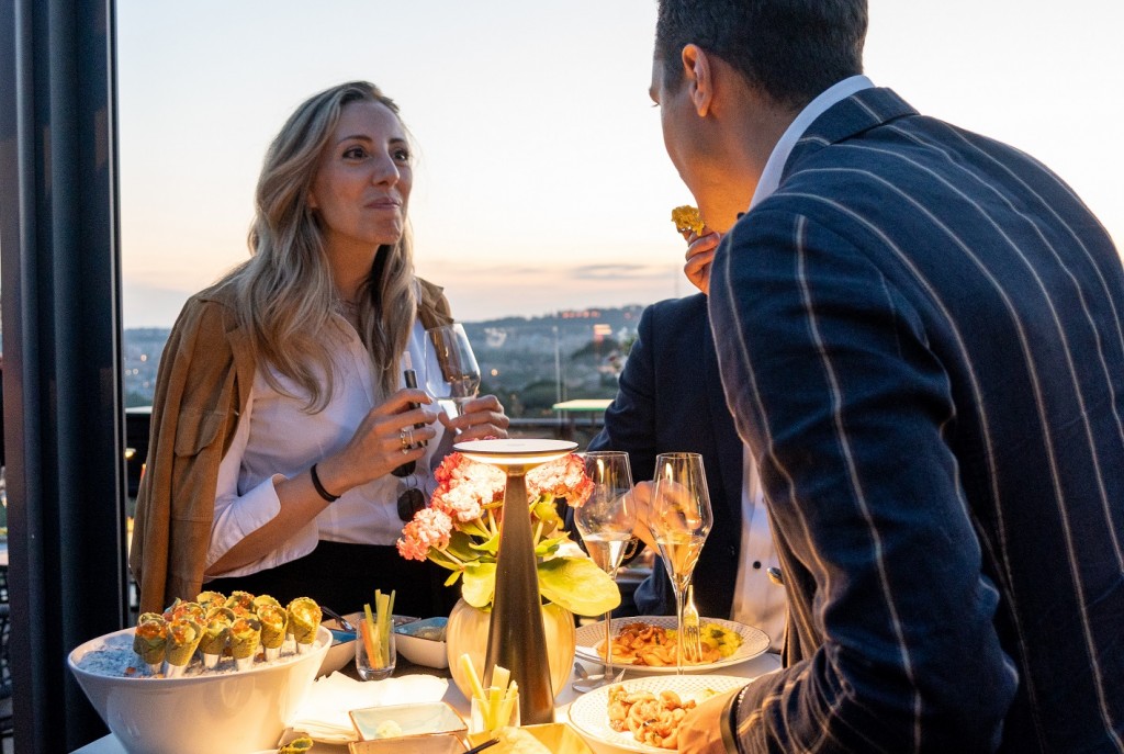Nell’atmosfera di una magnifica serata di inizio giugno, l’edizione capitolina del Glamour Hotel Event si è tenuta su una delle più belle terrazze nel cuore di Roma: stile glam e magnifica vista sul parco di Villa Borghese per il rooftop Adele Mixology lounge dell’hotel Splendid Royal; un albergo dallo stile classico e raffinato simbolo dell’hôtellerie romana che fa da contraltare al nuovo e contemporaneo che sta arrivando. La regia della kermesse romana, che segue l’appuntamento milanese dello scorso maggio, è da sempre affidata a Monia Ronconi, founder & web editor di HotelmyPassion.