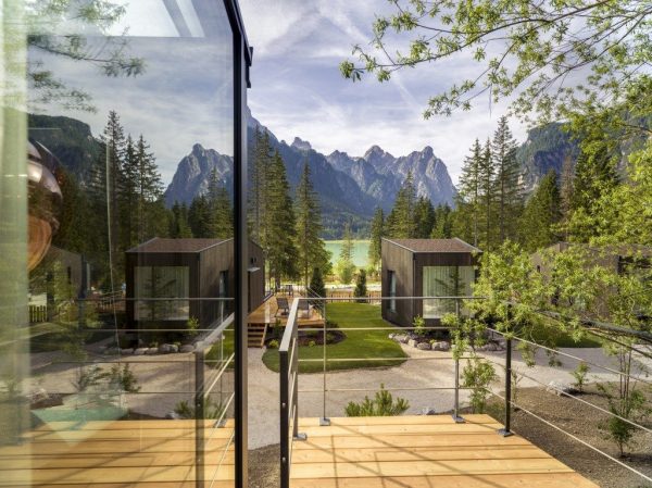 Inaugurati a giugno gli Skyview Chalets del Toblacher See sono 12 glass cube che ricordano il deck di una nave, realizzati da maestranze locali impegnate a reinterpretare un concetto tradizionale in senso ultra-contemporaneo, utilizzando stoffe e legni del territorio. A pochi chilometri dalle tre Cime di Lavaredo ed esattamente al confine tra il parco naturale Dolomiti di Sesto e quello di Fanes-Sennes-Braies, il Toblacher See introduce alla dimensione innovativa degli Skyview Chalets con una reception ricavata dal legno dei pini del bosco, al di sotto della quale si trova una cantina con enoteca. Ogni glass cube ha la propria spa privata con sauna a infrarossi. La colazione – ovviamente bio e con prodotti di strutture del territorio – viene recapitata e lasciata davanti alla porta con quad elettrici.