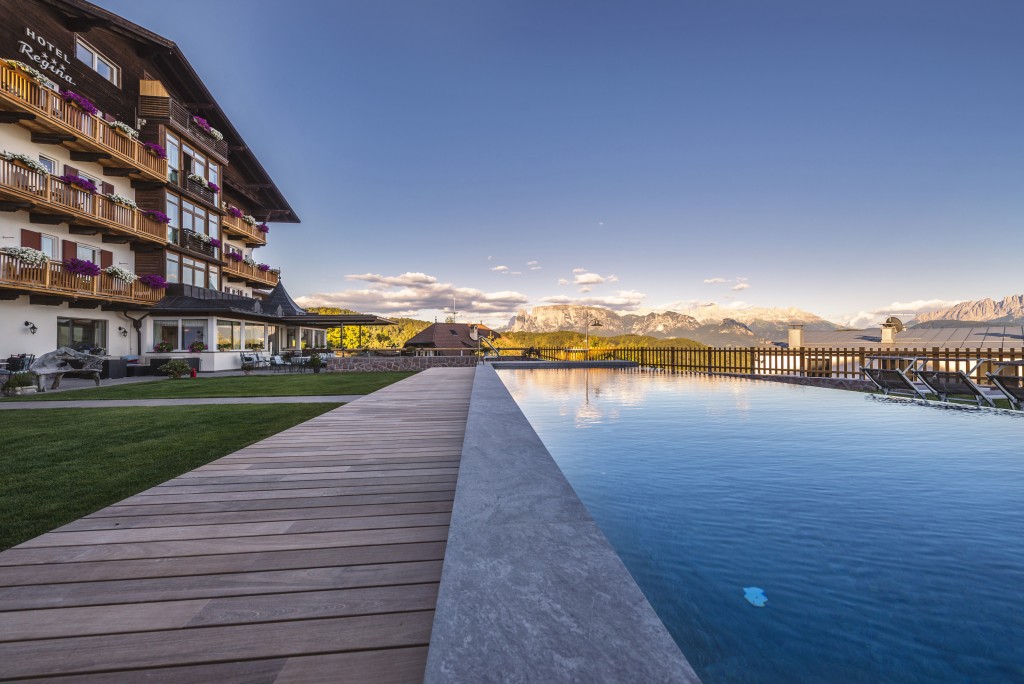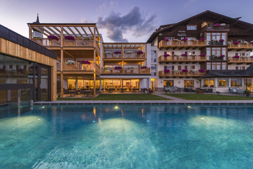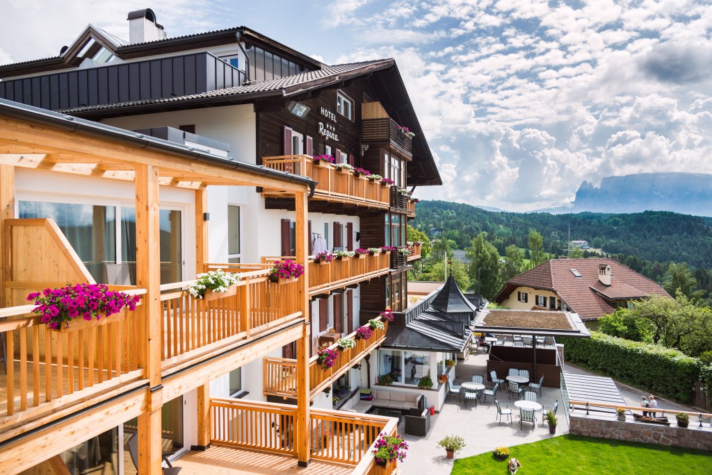 Un hotel nel cuore dell’Alto Adige con lo splendido scenario di montagna delle Dolomiti: è qui nel paese di Soprabolzano, dove arriva la funivia che collega la città al “suo” altipiano in 12 minuti, che si trova l’Hotel Regina, aperto originariamente da Maria Zwerger e Raimund Brenn nel 1936, con una capienza iniziale di 20 posti letto.