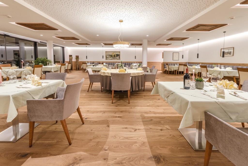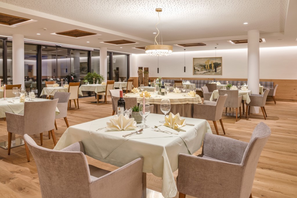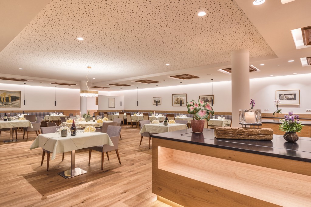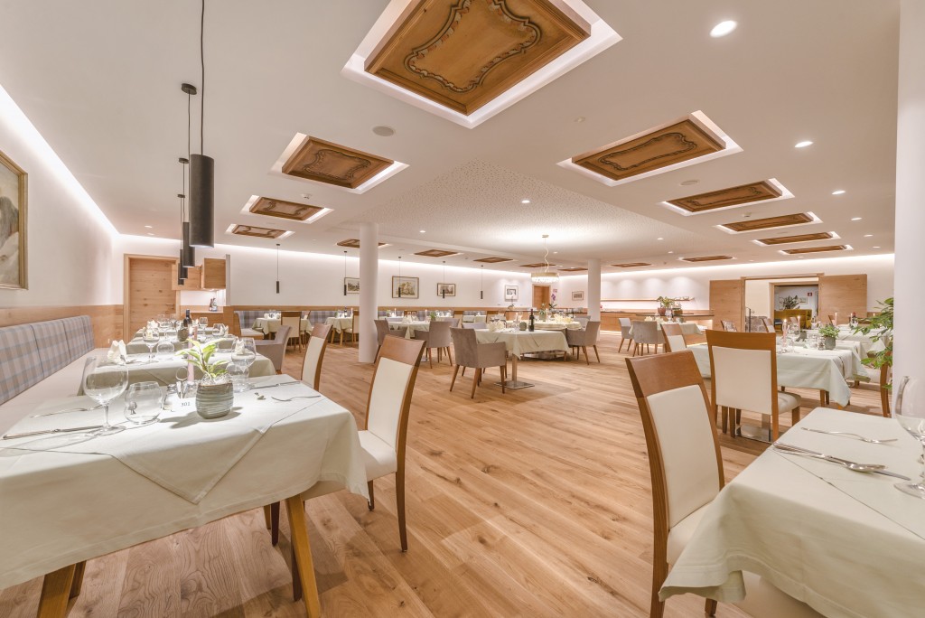 Non viene certo trascurata la parte “ristorazione” partendo dalla “colazione imperiale” alla domenica a torte fatte in casa al pomeriggio fino alla deliziosa cena di 5 portate per godersi la cucina tradizionale con specialità altoatesine, vini pregiati della regione del Renon. Per gli amanti della carne e dei barbecue, il giovedì sera una sontuosa grigliata, condita di tutto quello che potreste immaginare viene allestita nel prato antistante il corpo centrale per la gioia degli ospiti.