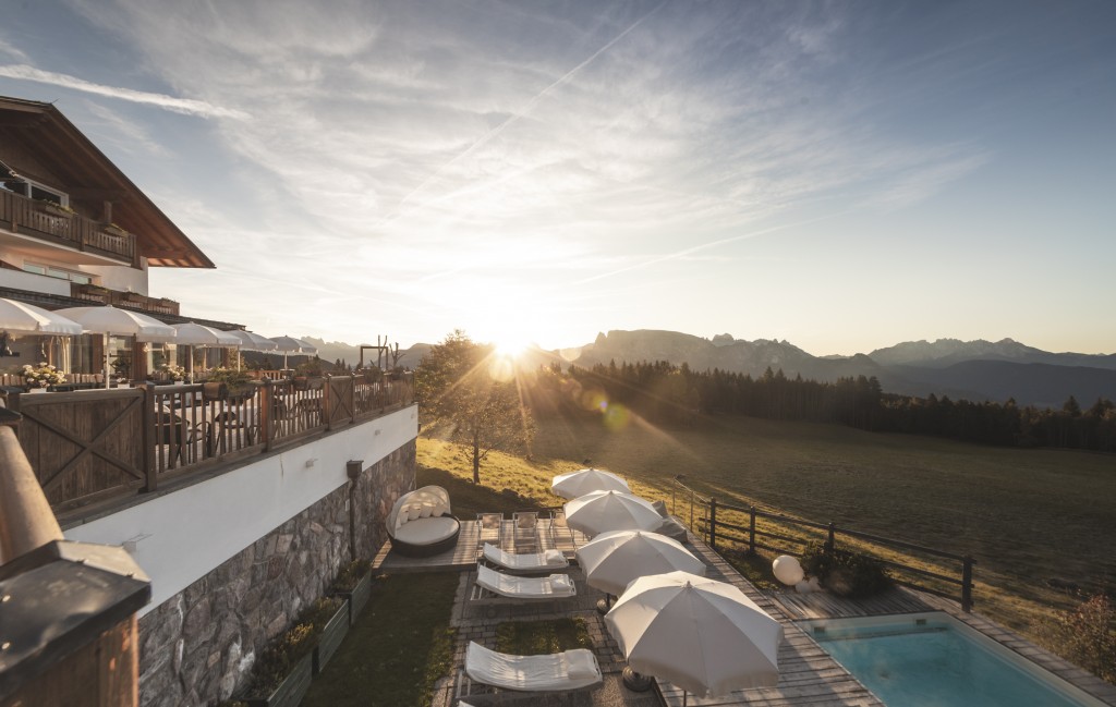 nteressante luogo di vacanza estiva, l’Altopiano di Renon vanta diverse eccellenze dell’accoglienza, una delle quali è un rifugio protetto e privilegiato nel cuore della natura, a 1500 m di altitudine, nella frazione di Collalbo, il Tann. Da ogni angolo del resort , adagiato su un crinale in mezzo al bosco, la “quinta” si cui si affaccia è il meraviglioso ed imponente Sciliar, e tutta la serie di montagne che costituiscono quell’unico scenario che si chiama Dolomiti, le montagne più belle del mondo.