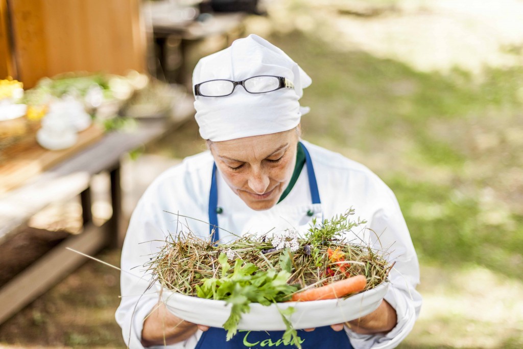 «In cucina, abbiamo una regola ferrea e precisa: “Prendi il meglio dell’Alto Adige – spiega Barbara Untermanzoner – alimenti e ingredienti freschi locali, da agricoltura sostenibile, che abbiano gusto e sapore inconfondibile. Nel caso di erbe selvatiche, frutti di bosco e fiori, che proponiamo il passaggio dal campo al piatto è particolarmente breve, in quanto crescono nell’orto di casa; il resto è di produttori locali di provata qualità e affidabilità con cui lavoriamo da anni, Contadini del Renon».