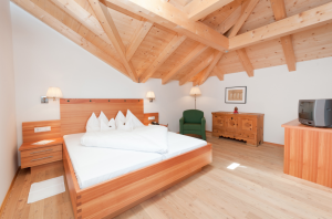 Offre 7 suite, 6 da 42 mq (Fontanella, Abete, 2 Arte Ladins, 2 R.M. Complojers), e la più grande, 52 mq, la tann top suite.