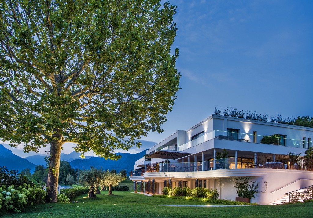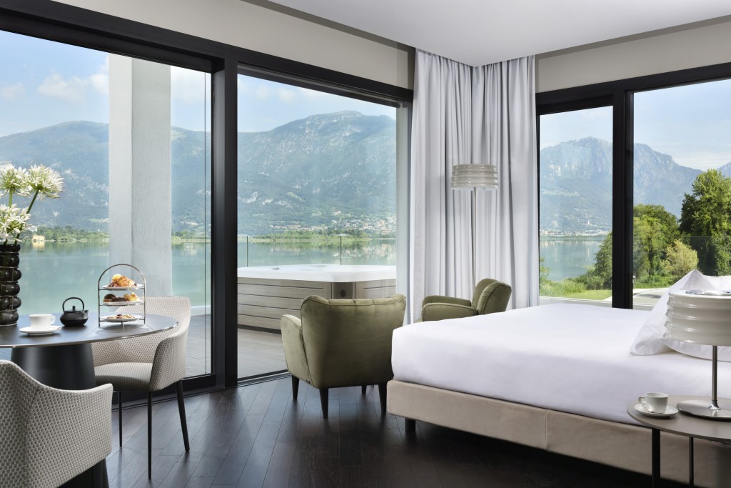 La proprietà è circondata da 15 mila metri quadrati di verde sulle sponde del lago con vista sulle vette prealpine. Le tipologie di camere spaziano dalla Classic vista giardino, fino alle Spa Junior suite vista giardino o vista lago e alle Spa suite vista giardino o vista lago. Tutte sono caratterizzate da un design contemporaneo con materiali naturali e dotate di una private spa con vasca idromassaggio panoramica sul balcone privato. Nelle suite è presente anche un bagno a vapore.