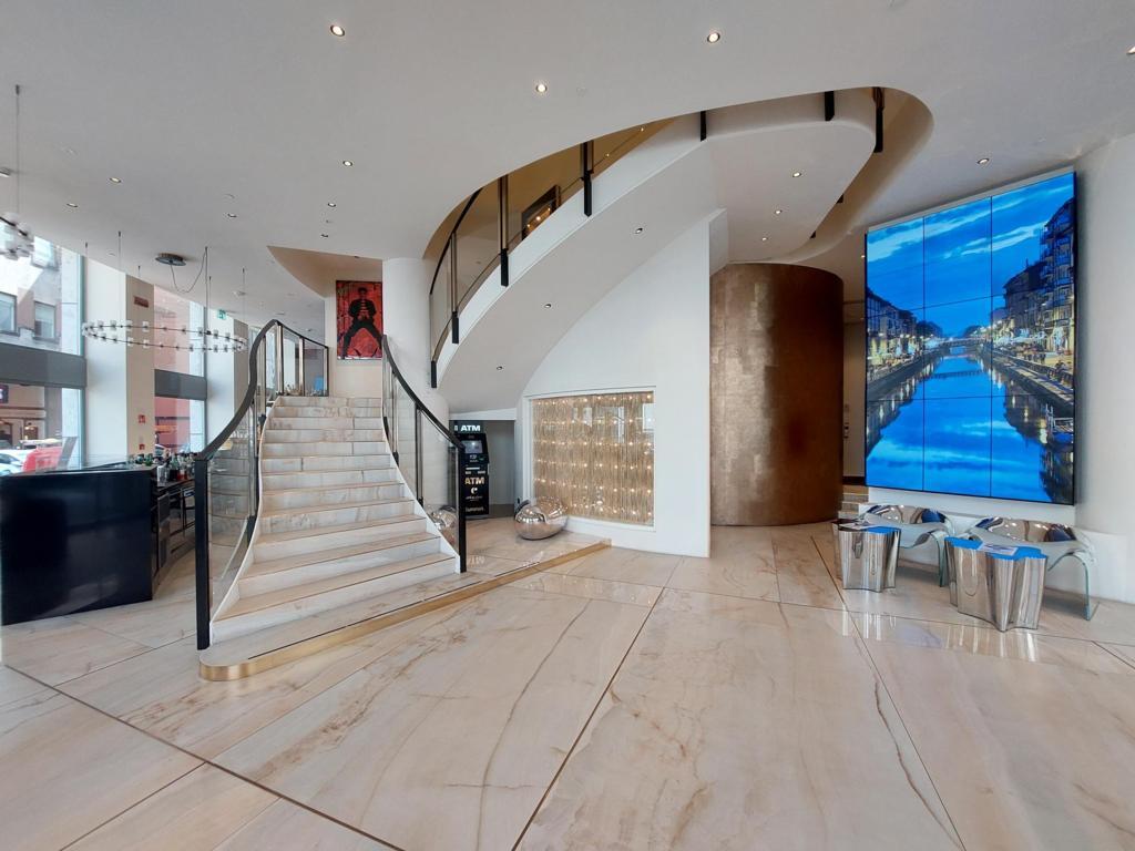 Affascinante la storia della struttura, riportata da Fabrizio Tagliasacchi – hotel manager e director of sales di Hotel The Square & Hotel Dei Cavalieri Milano. «Dobbiamo tornare alla fine della Seconda Guerra Mondiale. – racconta infatti Tagliasacchi – Nel 1949 il Comune di Milano decise di creare un viale simile agli Champs-Élysées di Parigi, che partiva da Via Larga e proseguiva per Corso Italia. In quest’area molti edifici erano stati distrutti dalle bombe. Tutto venne ripulito e anche una chiesa venne parzialmente spostata in San Babila per realizzare la passeggiata in stile parigino. Poi il progetto si fermò. Questo edificio venne costruito proprio nel 1949 con la funzione di albergo. Il palazzo fu realizzato dallo Studio Lancia – lo stesso di Emilio Lancia e Giò Ponti – che diffusero l’arte e l’architettura creando la “cultura dell’abitare”, coinvolgendo tutti gli aspetti della creazione di un immobile. L’innovazione era nelle soluzioni tecniche adottate e nella vivibilità degli spazi interni dalle linee pulite e ordinate, secondo la tradizione neoclassica lombarda: elegante nella sua severa classicità. Negli anni ‘60 l’albergo era concepito in due parti: una di forma semicircolare con funzione di albergo e un residence nella parte posteriore (successivamente ristrutturato e aperto come hotel nel 2015, con Expo).