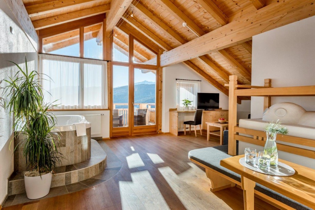 Il Tratterhof è un “Mountain Sky Hotel“ perché stando a 1520 metri di altitudine, nell’area vacanze Gitschberg Jochtal/Rio Pusteria offre due splendide visuali montane: la valle Isarco fino a Bolzano e la val Pusteria sino al confine con l’Austria, con una invidiabile vista panoramica sulle Dolomiti.