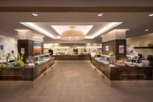 Al grande buffet si viene serviti dal personale. I tavoli sono distanziati, grazie al grandissimo spazio antistante il ristorante. La cena è sotto le stelle, circondati dalle scenografiche piscine illuminate. Il servizio al tavolo per drink e aperitivi è continuativo: da mattina a tarda sera, si sorseggiano le creazioni dei bar tender del Vivosa Apulia Resort.