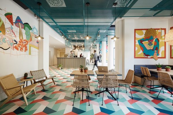 Ci sarà uno spazio dedicato al coworking, più di un’area ristoro, una grande cucina condivisa per le cooking class e un cortile per godere l’arrivo della primavera. L’esperienza food & beverage, così come il break time per i professionisti, si sviluppa su tre livelli, come i momenti della giornata, in linea con l’operosità della mattina e il gusto delle serate più vivaci: dallo spazio secret del Basement, inedito luogo fertile per la cultura underground e i cocktail della notte nel cosiddetto “Bargiù”, al “Barmezzo” per tutti i piaceri del giorno, fino a salire verso le nuvole, nel “Barsù”, dove l’aria si fa leggera. Qui, novità assoluta rispetto alle altre sedi italiane, l’area relax sul rooftop con piscina e solarium, con vista panoramica sulla città. L’ambientazione interna veste di gusto retrò: sui muri ci sono le opere dell’artista argentina Valentina Chiappero, per un progetto intitolato “SACADO” – termine spagnolo che significa “estratto dal contesto” – volto a evidenziare l’essenza fluida del futuro, dalla molteplicità di significati, connotato dall’assenza di genere, tempo e spazio definiti.