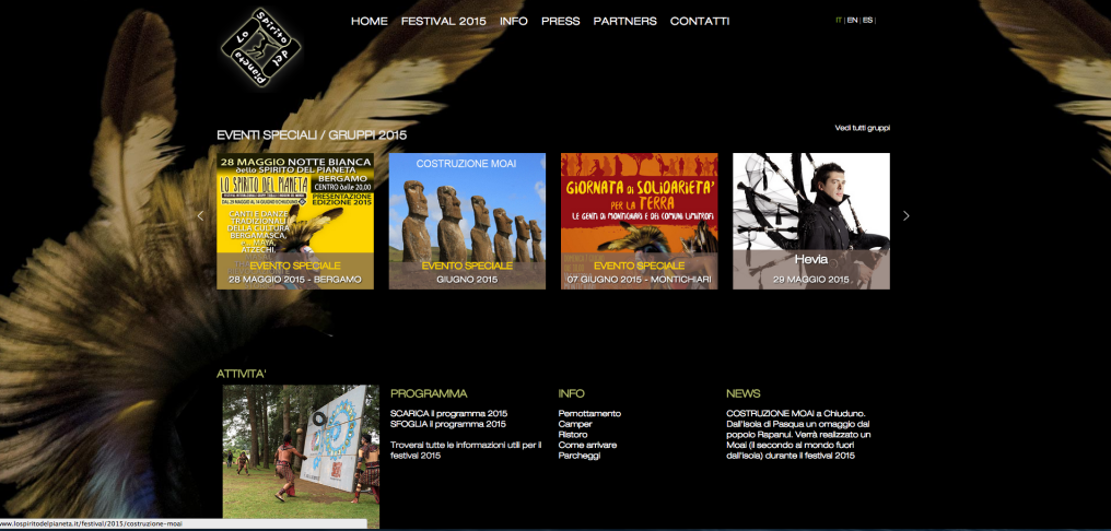 Dal 29 maggio al 14 giugno il polo fieristico di Chiuduno, in provincia di Bergamo, ospiterà “Lo spirito del Pianeta”, un festival che promuove e realizza progetti culturali e umani in difesa dei popoli tribali, della loro cultura e dell’ambiente in cui vivono. Il primo festival in Italia in cui tutto viene “riciclato” e che a due passi da Bergamo per 17 giorni porta fuori da casa nostra, storie, suoni, tradizioni affascinanti da tutto il mondo. L’ingresso è libero e d è presente una struttura al coperto che garantirà la realizzazione degli spettacoli anche in caso di maltempo. Il centro aprirà il sabato alle 17, la domenica alle 12 e tutti i giorni feriali alle 19. Sono 250 mila le presenze attese, 20 i gruppi provenienti da tutto il mondo e oltre 150 espositori di artigianato da tutto il mondo.