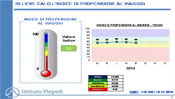 Diminuisce ancora, per il secondo mese consecutivo, la propensione degli italiani al viaggio. E’ il risultato dell’ultima indagine dell’osservatorio Confturismo, realizzato con l’Istituto Piepoli, nell’ambito di un monitoraggio costante che ha preso il via lo scorso maggio. La propensione a viaggiare degli italiani è ai minimi da maggio, l’indice è passato da 58 a 56 su 100 in un mese, a causa della forte crisi economica che il Paese sta attraversando.Nel prosimo trimestre, le città d’arte resteranno in cima ai desideri degli italiani: la lunghezza media di una vacanza sarà di 4 notti e oltre un italiano su due, di quelli che faranno una vacanza nel prossimo trimestre, vuole andare a visitare le bellezze delle città. Le destinazioni preferite sono quelle classiche: Roma, Firenze e Venezia in Italia e Parigi, Londra e Berlino in Europa. Ben 4 italiani su 10 hanno usufruito dei servizi di una guida turistica nella visita di una città d’arte e quasi nel 90 per cento dei casi li hanno trovati utili. Tra le destinazioni preferite nel periodo ottobre-dicembre vi sono la Toscana, il Lazio e Trentino Alto-Adige. A livello europeo gli italiani invece preferiscono la Germania.